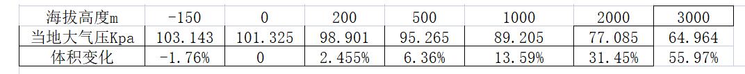 設(shè)定溫度為 0℃不變,且忽略緯度的影響,一定質(zhì)量的氣體體積將隨海拔高程——當(dāng)?shù)卮髿鈮鹤兓儯渥兓咳绫?C.3 所示。