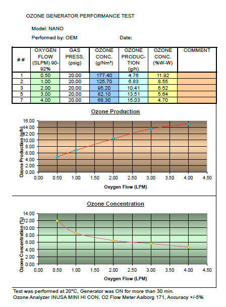 臭氧發生器性能圖表: